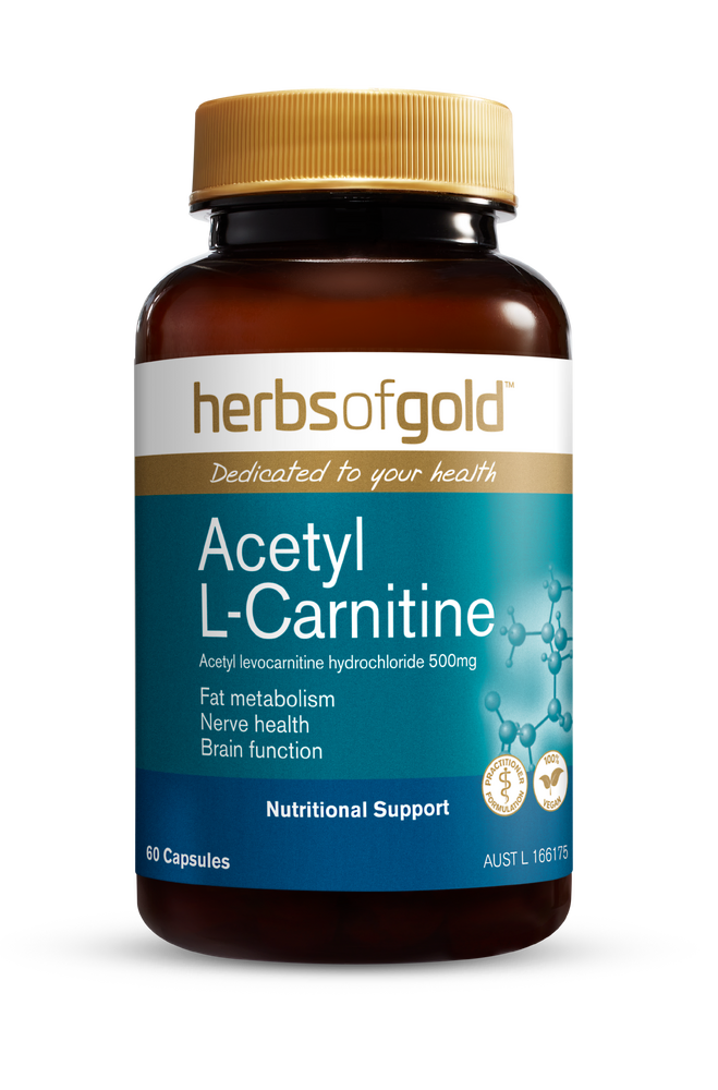 Herbs of Gold Acetyl L-Carnitine contains 500mg of carnitine, an amino acid that supports energy production and muscle performance.