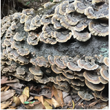 The Turkey Tail mushroom is an extremely abundant mushroom found predominantly in temperate forests. The name of the mushroom originates from its appearance, as the mushroom fruiting body resembles the ruffled feathers of a turkey's tail as it grows on decaying trees.