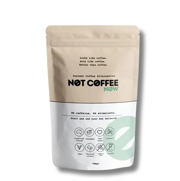 Not Coffee Now is a 0% caffeine and stimulant-free coffee alternative that performs exactly like instant coffee—all you need is boiled water and your favourite milk. Designed to look, act, and taste as close to coffee as possible, our blend replicates a rich, bold coffee flavour profile without the acidity or bitterness of traditional coffee.
