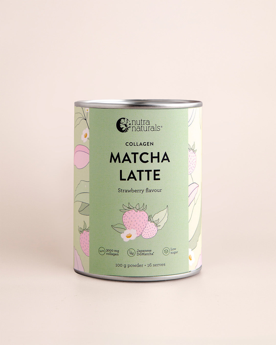Hydrolysed Collagen Peptides (Bovine), Japanese DōMatcha® Green Tea* (22%), Natural Flavours, Strawberry (3%), Coconut MCT Oil, Sea Buckthorn, Natural Sweetener (Monk Fruit).