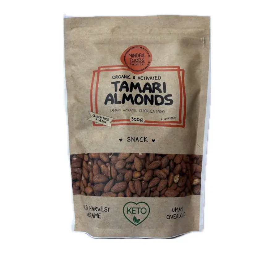 Ingredients: ORGANIC ALMONDS*. ORGANIC TAMARI*, MISO (ORGANIC WHITE RICE, ORGANIC CHICKPEA MILD TASMANIAN WAKAME (UNDARIA PINNATIFIDA) SEA SALT. KOJI (ASPERGILLUS ORTZAE)) CONTAINS: ALMOND. -CERTITIED ORGANIC INGREDIENT. THIS IS A NATURAL PRODUCT. • MAY CONTAIN TRACES OF OTHER SEEDS. NUTS AND SHELLS