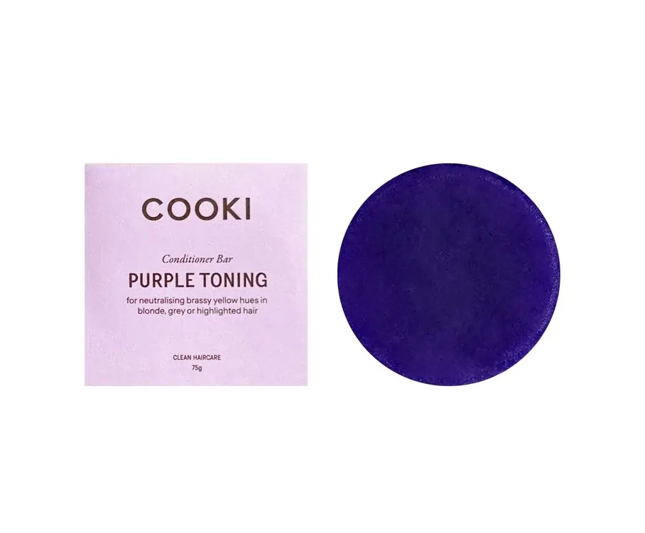 Ideal for all hair types including oily, fine, dry, grey, curly, coloured, thinning or frizzy hair, this gentle conditioner can be safely used by all. Compact, light and spill-proof for travel, it makes for the perfect toning routine on the go. For best toning results, always use alongside the Cooki Purple Toning Shampoo Bar or Unscented Purple Shampoo Bar option.