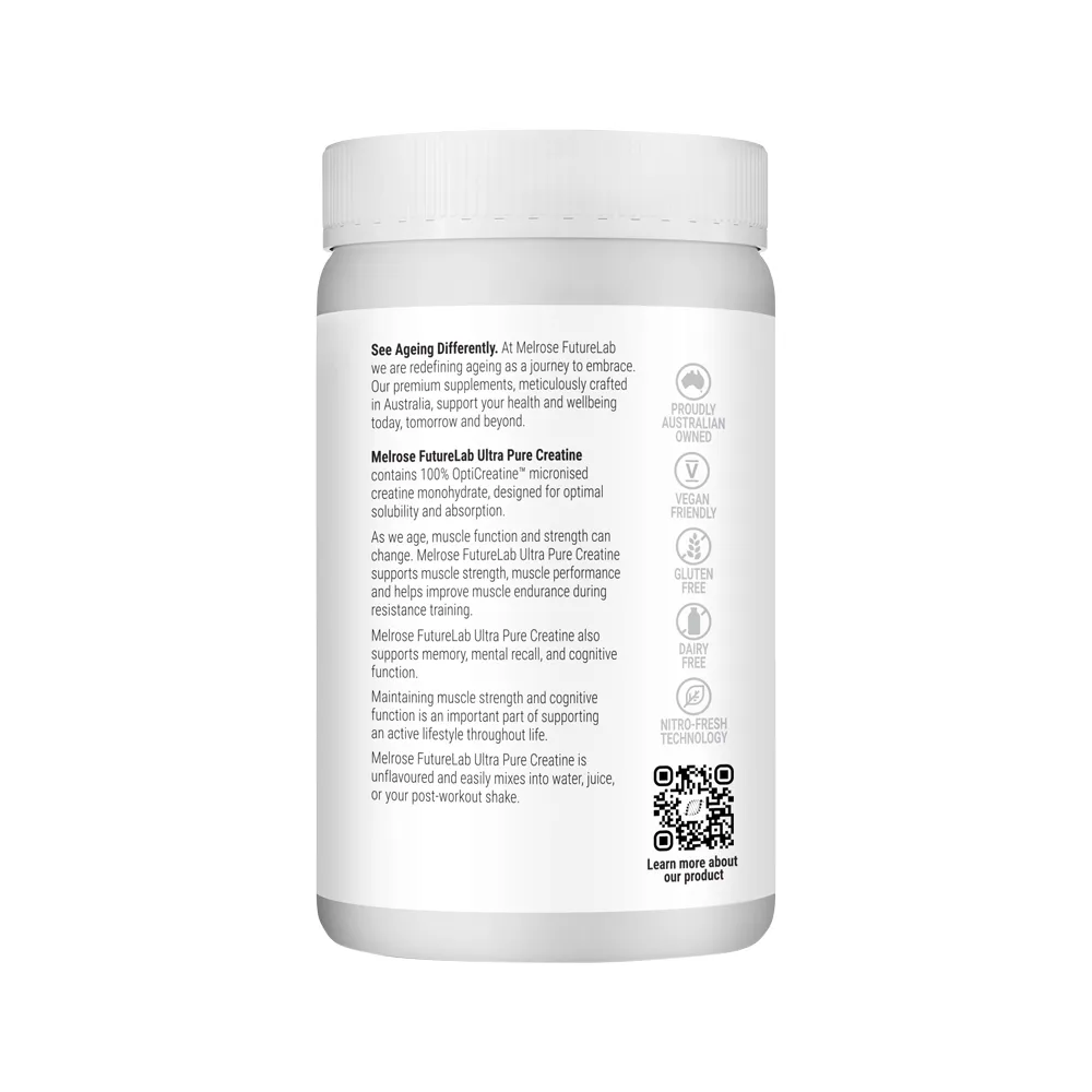 Fuel your workouts and support mental performance with Melrose FutureLab Ultra Pure Creatine, featuring 100% OptiCreatine™ micronised creatine monohydrate. This ultra-pure, unflavoured powder supports muscle strength, performance and endurance during resistance training, while helping maintain memory, mental recall and cognitive function.