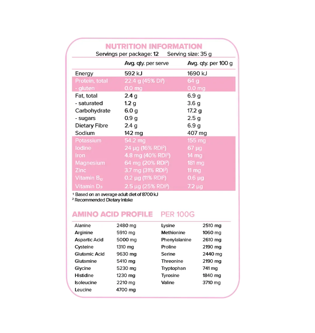 Mix 35 g (approx. 1/3 cup) into 200-300 mL chilled water, your favourite plant-based mylk or smoothies once daily. Can also be used in cooking or baking.
