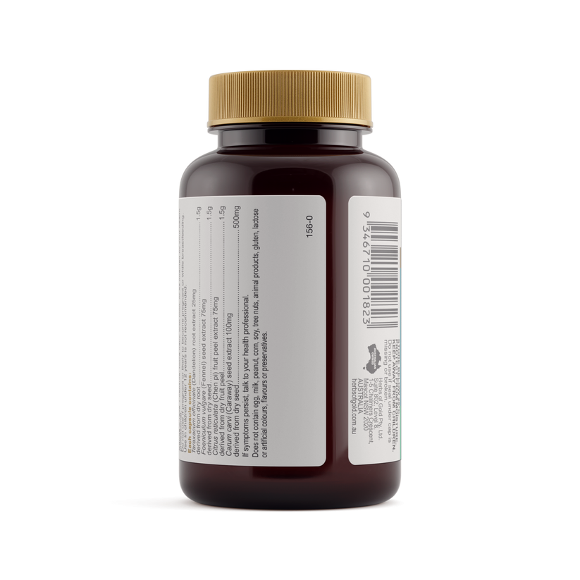 Bloating Relief Complex contains Caraway and Fennel, herbs traditionally used in Western herbal medicine as carminatives to reduce flatulence and colic (pain caused by excessive wind or gas). Caraway is also traditionally used in Western herbal medicine to support healthy digestion and enhance stomach health.