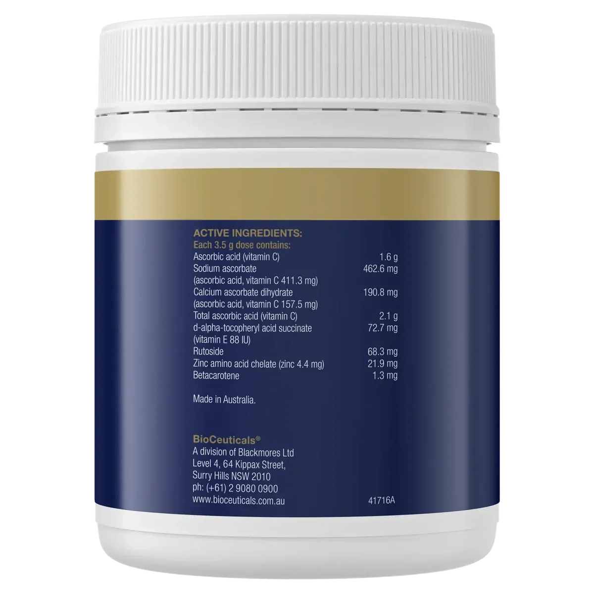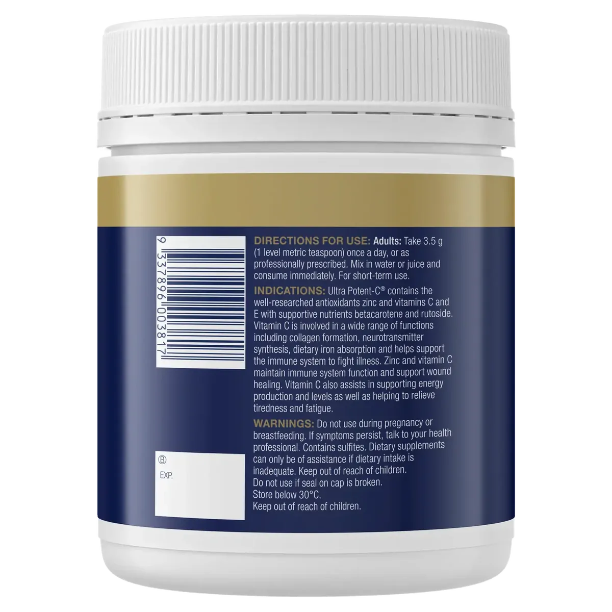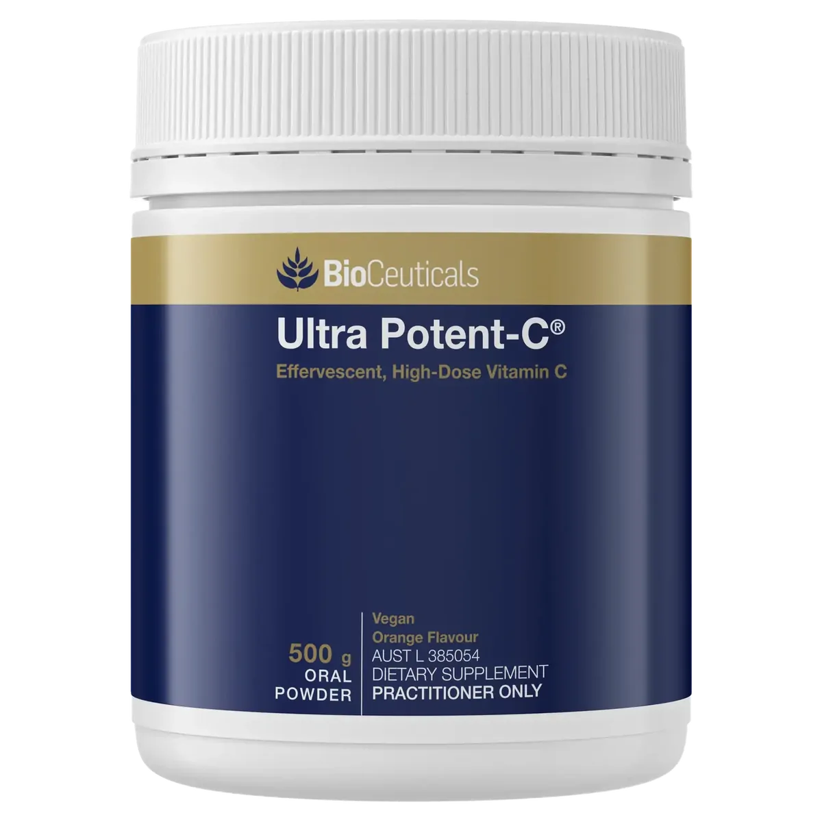 Ultra Potent-C® is an orange flavoured effervescent that contains antioxidants zinc, betacarotene and vitamins C and E to help reduce free radical damage to body cells. Vitamin C is involved in a wide range of functions including collagen formation, neurotransmitter synthesis, iron absorption and helps support the immune system to fight illness. Zinc and vitamin C maintain immune system function and support wound healing. Vitamin C also assists in supporting energy production and levels, as well as helping to relieve tiredness and fatigue. Part of BioCeuticals range of immune supplements.